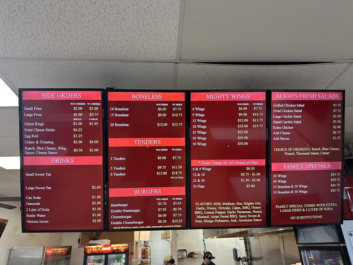 For those seeking a complete meal, Mighty Wings offers delectable side orders like crispy fries, onion rings, and fried cheese sticks. Health-conscious diners can indulge in their always fresh salads, including Grilled or Fried Chicken Salads that harmonize flavor and nutrition.